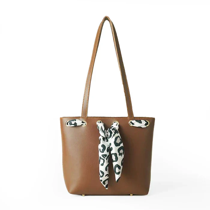 Made of superior and durable this bag has a refined feel and a shaped design. The sleek surface is enhanced with a free patterned silk scarf knotted to the handle, which gives the accessory some color and Chic Accent, which can be removed easily to provide a versatile style.